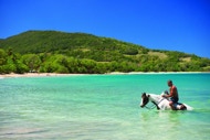 Le Haras de Saint-François vous propose des balades et baignades en mer à cheval.