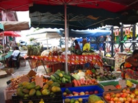 Pour acheter fruits, légumes, épices locaux «Ô Marché an nou » sur la route de Saint François. Le vendredi et le samedi vente de plats préparés viande et pâtisserie.